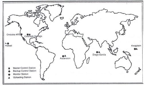 Hình 2.2: Các trạm điều khiển của hệ thống GPS