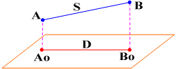 Giả sử A và B nằm ở những độ cao khác nhau trên mặt đất. Do mặt đất nghiêng nên khoảng cách AB là khoảng cách nghiêng và ký hiệu là S. Khi chiếu hai điểm này xuống mặt phẳng nằm ngang Po theo phương đường dây dọi sẽ được hình chiếu tương ứng của chúng là Ao và Bo; khoảng cách AoBo là khoảng cách ngang và ký hiệu là D (hình 4.1). |