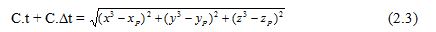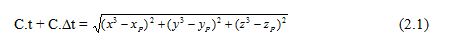 Trong đó: s = [xs ys zs]- tọa độ vệ tinh; p=[xp yp zp]- tọa độ diểm mặt đất; C- vận tốc sóng; t- thời gian sóng đi từ vệ tinh tới máy thu; Dt- số hiệu chỉnh thời gian.